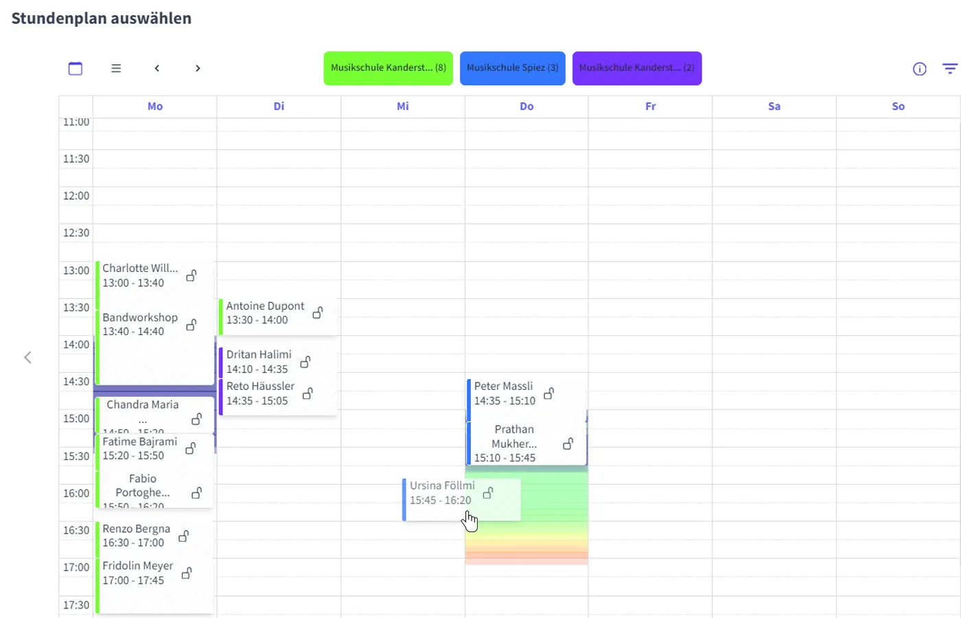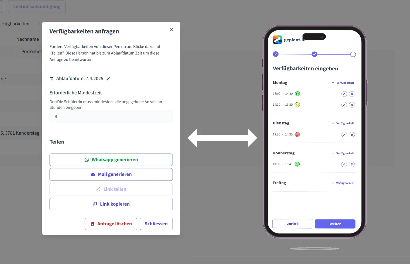 "My students can submit their availabilities themselves and I don't have to answer countless WhatsApp messages anymore. Such a relief!"